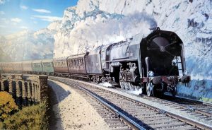 Taking the Medlock Train home at the end of hostilities. This is the train used to transport British and Allied Troops back home to Britain. It was pulled by a SNCF (French Railways) coal-fired, Class 141 R steam locomotive. 1000 of these were built in Canada and USA to replace those taken by the Germans or destroyed in Allied bombing. There were 3 routes in 1945: Route A – Toulon to Dieppe/Calais; Route B – From Milan via Switzerland to to Calais; Route C – from Villach (south Austria) to Calais / Hook of Holland.